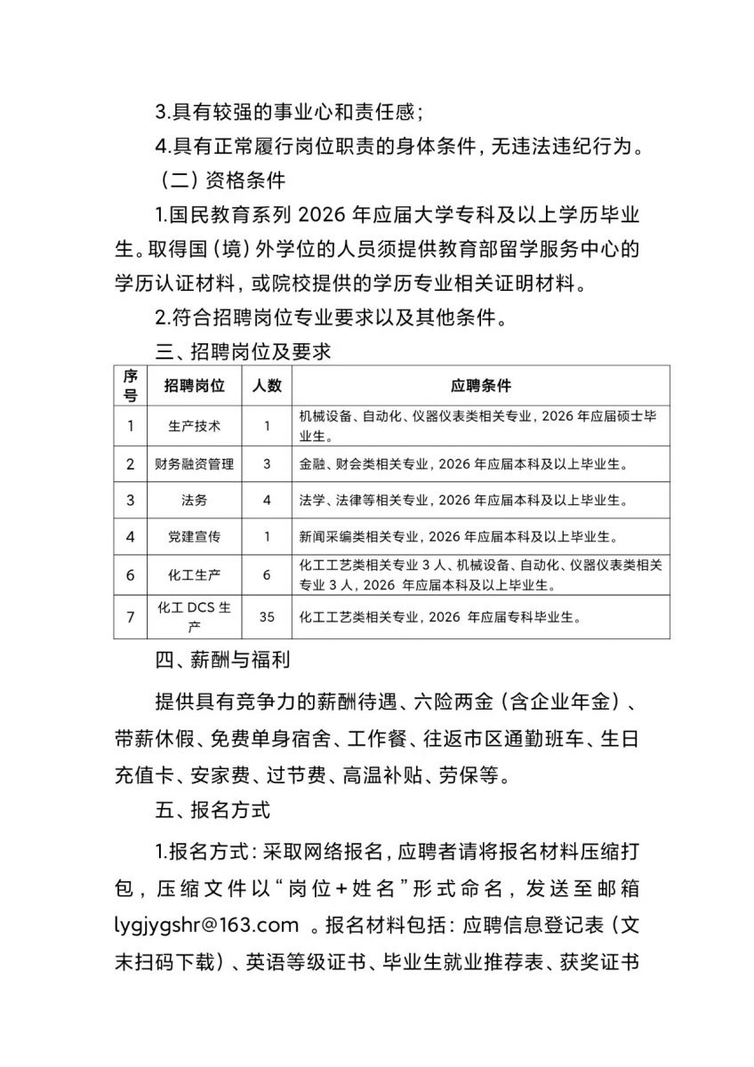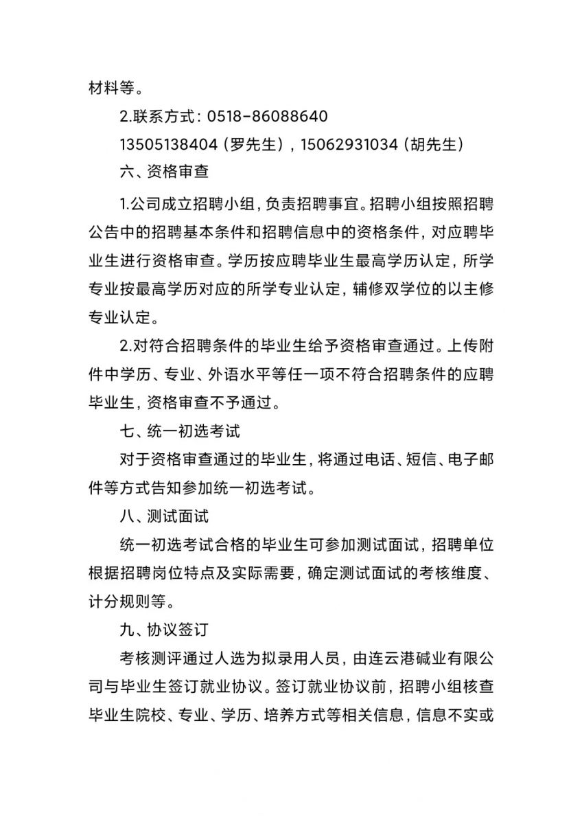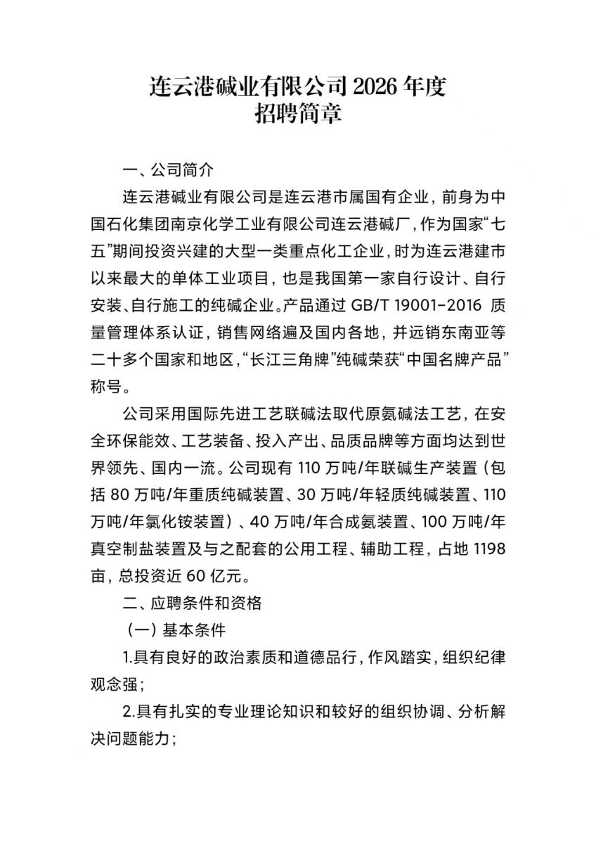 连云港碱业有限公司2026年度招聘简章
