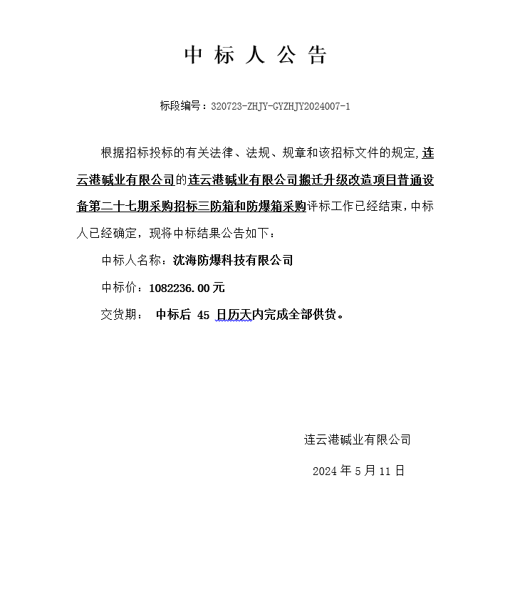 搬迁升级改造项目普通设备第二十七期采购招标三防箱和防爆箱采购中标人公告