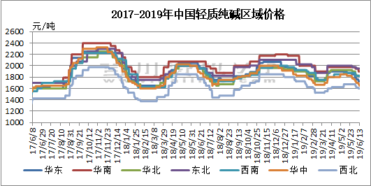 图1:轻质纯碱送到价格走势图(注:西北出厂)